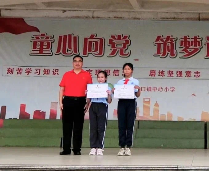 隨后,李校長(zhǎng)為榮獲2021—2022年度“中山市少先隊(duì)紅旗中隊(duì)”稱號(hào)的原三4中隊(duì)和榮獲2021—2022年度“中山市優(yōu)秀少先隊(duì)員”稱號(hào)的原五(3)班梁子淳同學(xué)頒獎(jiǎng),鮮艷的中隊(duì)旗飄揚(yáng)在會(huì)場(chǎng),臺(tái)下掌聲雷鳴。