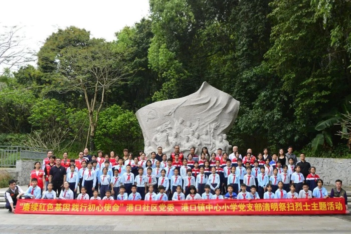 在革命烈士紀(jì)念碑前,李小健書記發(fā)言:當(dāng)前的幸福生活都是革命先烈們?cè)⊙獖^戰(zhàn)得來,我們要珍惜這來之不易的生活,努力學(xué)習(xí),報(bào)效祖國;港口居委會(huì)梁志坤書記并激勵(lì)全體少先隊(duì)員要學(xué)會(huì)感恩,樹立遠(yuǎn)大理想。少先隊(duì)員代表梁鄭聲同學(xué)呼吁隊(duì)員們學(xué)習(xí)歷史,銘記歷史,把紅色基因傳承下去,共創(chuàng)祖國美好未來。