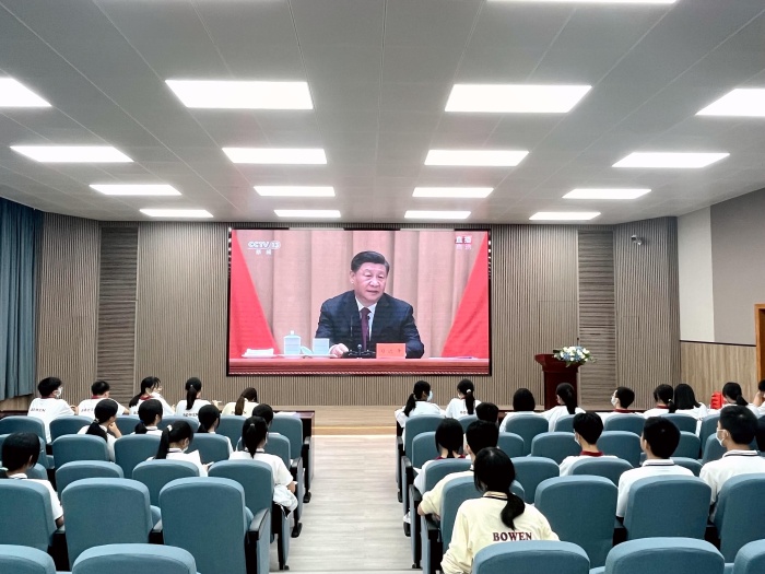 越百年櫛風(fēng)沐雨,綻芳華乘風(fēng)破浪。今年是中國(guó)共產(chǎn)主義青年團(tuán)成立100周年,慶祝大會(huì)在北京人民大會(huì)堂隆重舉行。中共中央總書記、國(guó)家主席、中央軍委主席習(xí)近平出席大會(huì)并發(fā)表重要講話。廣東博文學(xué)校初、高中部共同組織團(tuán)員以及入團(tuán)積極分子在綜合樓407觀看本次建團(tuán)100周年慶祝大會(huì)的現(xiàn)場(chǎng)直播。