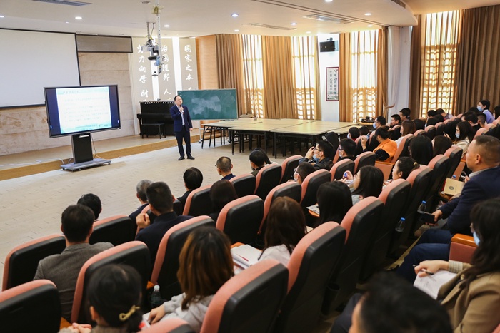 隨后,各位教師齊聚學(xué)校會議室進行座談交流。初中部湯勇校長首先介紹了博文學(xué)校的基本情況以及初中部的教學(xué)常規(guī)。緊接著,湯校以“打造智慧課堂,推進智慧教育”為主題,依據(jù)學(xué)生學(xué)習(xí)數(shù)據(jù)講述了智慧課堂的優(yōu)勢,并就如何推動智慧課堂的應(yīng)用分享了許多行之有效的做法和經(jīng)驗,兄弟學(xué)校代表也對智慧課堂給予了高度肯定。