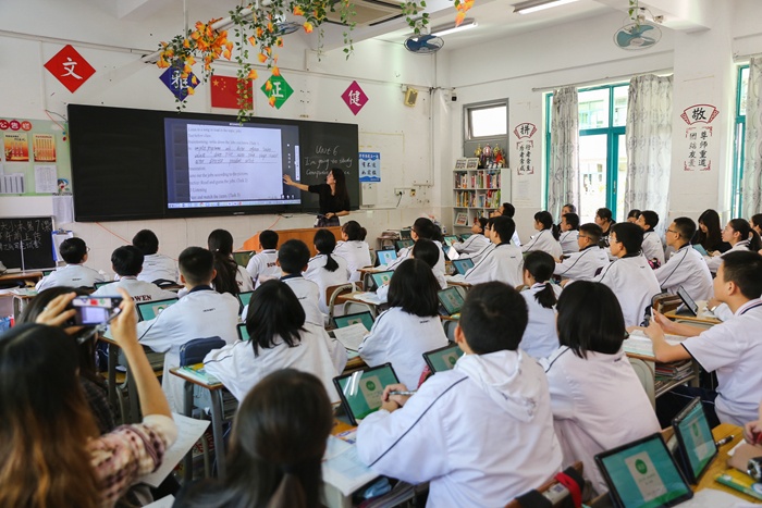 初中部安排了下午第一節(jié)課語、數(shù)、英、史、生五個學(xué)科的公開課。上課教師依托平板開展智慧課堂高效教學(xué),為來訪教師呈現(xiàn)了五堂別具一格、生動高效的觀摩課。課堂上精彩紛呈,學(xué)生們收獲滿滿,聽課教師受益匪淺。聽課結(jié)束后,各位教師來到交流室,就智慧課堂如何利用平板進行課前備課、課堂教學(xué)、課后服務(wù)等問題進行了討論交流。