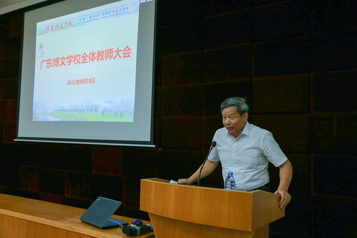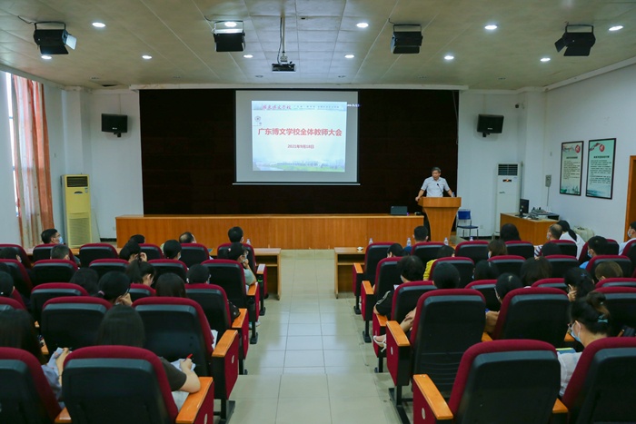 為落實學(xué)校教師黨史學(xué)習(xí)教育和師德、師風(fēng)教育,進(jìn)一步提升學(xué)校辦學(xué)質(zhì)量,促進(jìn)學(xué)??沙掷m(xù)發(fā)展,2021年9月18日下午,廣東博文學(xué)校在綜合樓407室舉行全體教師培訓(xùn)大會,學(xué)校校長張海經(jīng)、學(xué)校副校長任德利、黨支部書記李敏及全體教師出席會議,會議由任校長主持。