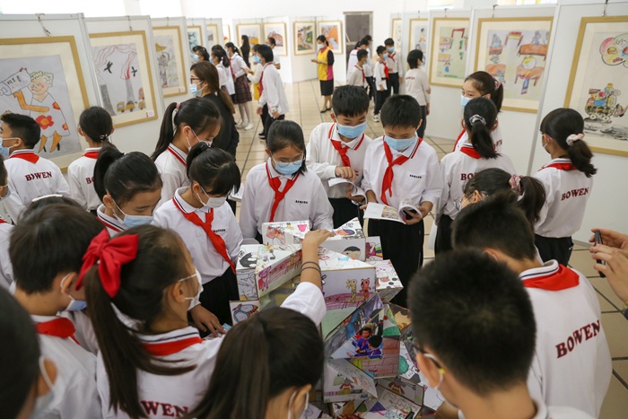 為豐富學(xué)生的學(xué)習(xí)生活,帶來一場漫畫文化盛宴,10月30日上午,由中山市婦女聯(lián)合會、中山市文化廣電旅游局、中山市教育和體育局主辦,廣東博文學(xué)校承辦的中山市第十二屆漫畫創(chuàng)意臨摹大賽(外來務(wù)工人員子女專場)獲獎(jiǎng)作品東部片區(qū)巡展開幕式在廣東博文學(xué)校綜合樓401舉行,中山市婦女兒童活動中心副主任陽艷峰、中山漫畫館館長鄒智怡、廣東博文學(xué)校校長張海經(jīng)、小學(xué)部校長徐曙、藝體處主任王萍出席活動,小學(xué)部師生參與活動。