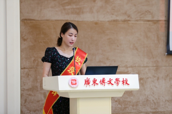 他們舍小家保大家的家國(guó)情懷;救死扶傷、醫(yī)者仁心的職業(yè)品格;敢于斗爭(zhēng)、逆行而上的使命擔(dān)當(dāng);團(tuán)結(jié)一心、同舟共濟(jì)的團(tuán)隊(duì)精神,使全場(chǎng)師生肅然起敬、深受鼓舞,潸然淚下,多次給以熱烈的掌聲,廣東博文學(xué)校師生們通過(guò)詩(shī)朗誦表演、抗疫繪畫作品等向抗疫模范表達(dá)崇高的敬意。