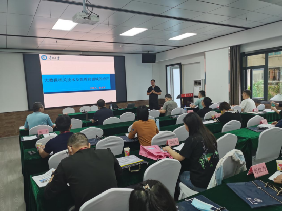 隨后,貴州大學碩士生導師張永軍副教授給學員作題為《大數(shù)據(jù)在教育中的運用》的專題講座。張永軍副教授從“一顆智慧樹”引入,告訴學員我們正處于大數(shù)據(jù)時代的導入期,緊接著從“認識大數(shù)據(jù)、云計算、區(qū)塊鏈”“大數(shù)據(jù)關鍵技術(shù)”“人工智能技術(shù)及應用”“大數(shù)據(jù)在教育領域的應用”四個板塊為學員授課。張教授的講座注重理論與實踐相結(jié)合,專業(yè)名詞與案例分析滲透,在國家發(fā)展的視域下為一線教育教學實踐打開了新的一扇窗,讓一線教師對于教育教學工作有新角度的認識。