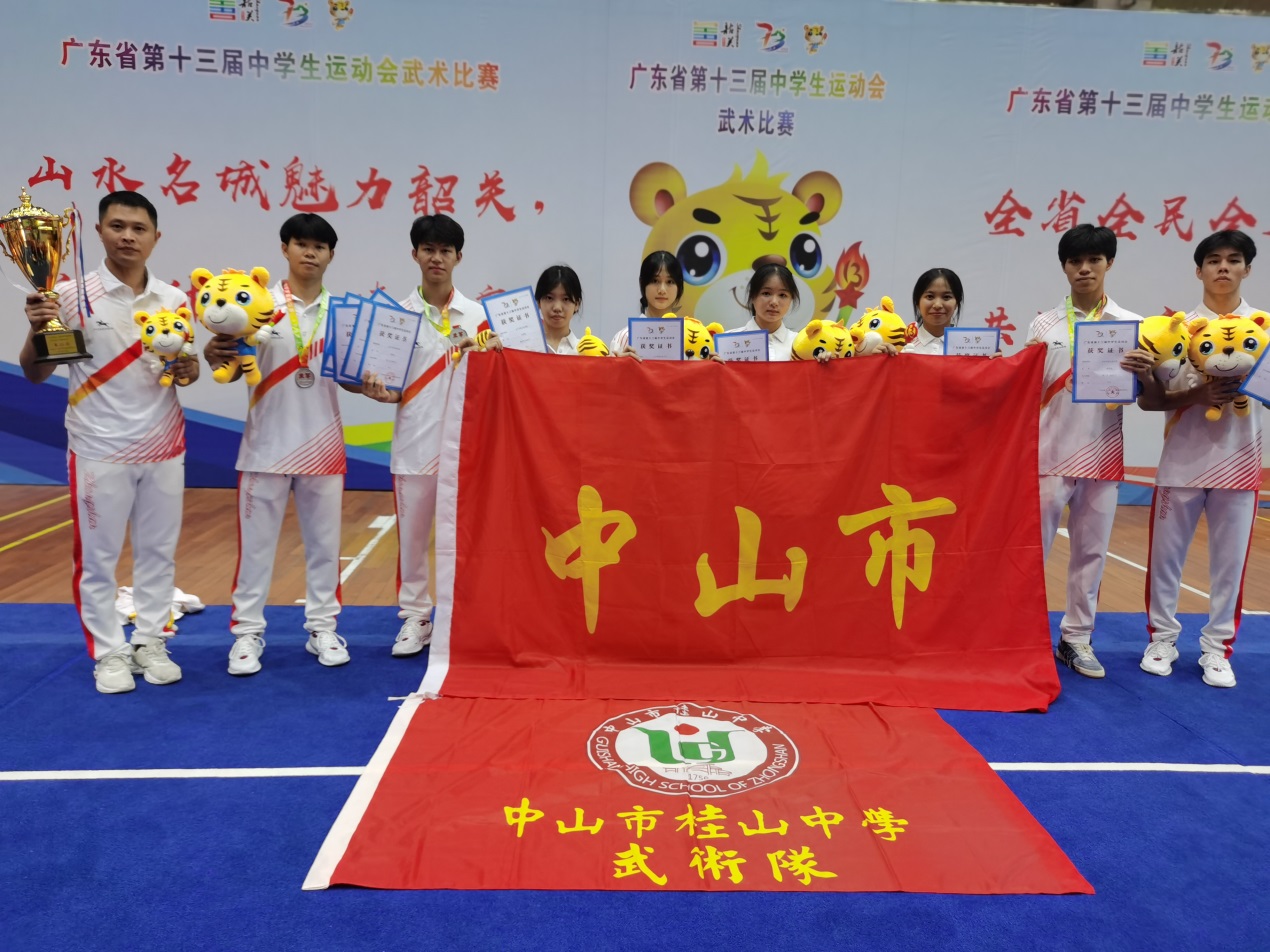 7月30日,廣東省第十三屆中學生運動會武術比賽在韶關市仁化縣體育館結束。此次武術項目比賽是廣東省中學生最高級別賽事,匯聚了全省各市的頂尖高手。由桂山中學組建的中山武術隊憑借著頑強拼搏、不斷進取的體育精神,最終獲得甲組三銀一銅的好成績。