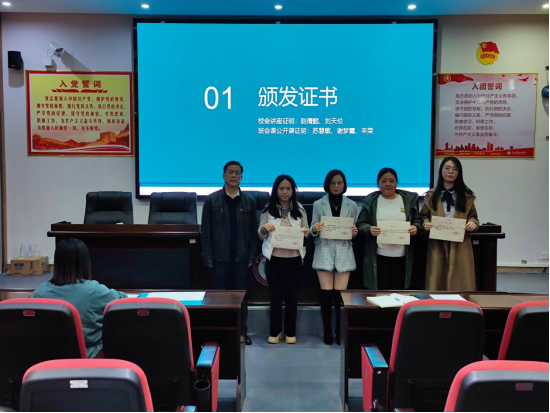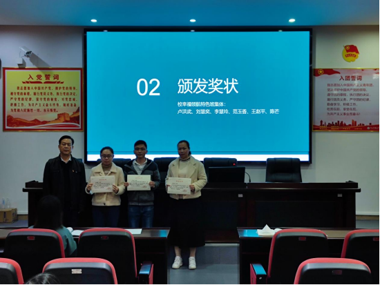 會議伊始,陳福生副校長為參加校會講座、班會公開課的教師頒發(fā)了證書,也為榮獲桂山中學(xué)2022年幸福領(lǐng)航特色班集體的班主任頒發(fā)獲獎證書。接著,陳欽贈等四位班主任作為班主任導(dǎo)師接受了班主任學(xué)員的獻(xiàn)花,結(jié)成師徒開啟一學(xué)年的交流與學(xué)習(xí)。