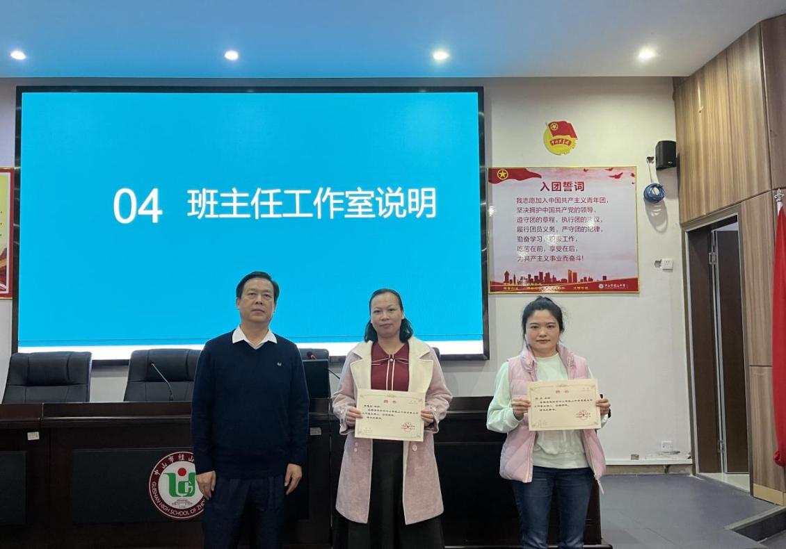 陳福生副校長為李慧玲老師、邢丹老師頒發(fā)了校班主任工作室主持人的聘書,并就學(xué)校德育工作作了重要講話。他高度肯定了上學(xué)期的德育工作和成績,鼓勵全校德育隊伍在新的學(xué)期從立德樹人根本任務(wù)出發(fā),認(rèn)真學(xué)習(xí)黨的二十大報告中對教育的戰(zhàn)略部署,樹立全面育人觀,引導(dǎo)學(xué)生德智體美勞全面發(fā)展,用心用情用智慧做好育人工作,讓校園有笑聲、歌聲、加油聲和歡呼聲。