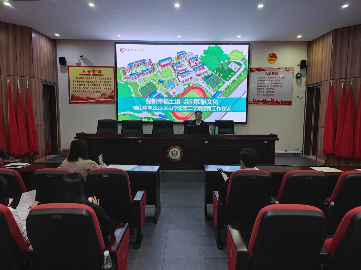 2月7日下午,桂山中學(xué)在育賢樓一樓黨員活動室召開以“深耕幸福土壤,共創(chuàng)和雅文化”為主題的2022-2023學(xué)年第二學(xué)期德育工作會議。陳福生副校長出席會議并講話,全體德育干部、年級組、班主任和心理科組參加本次會議。