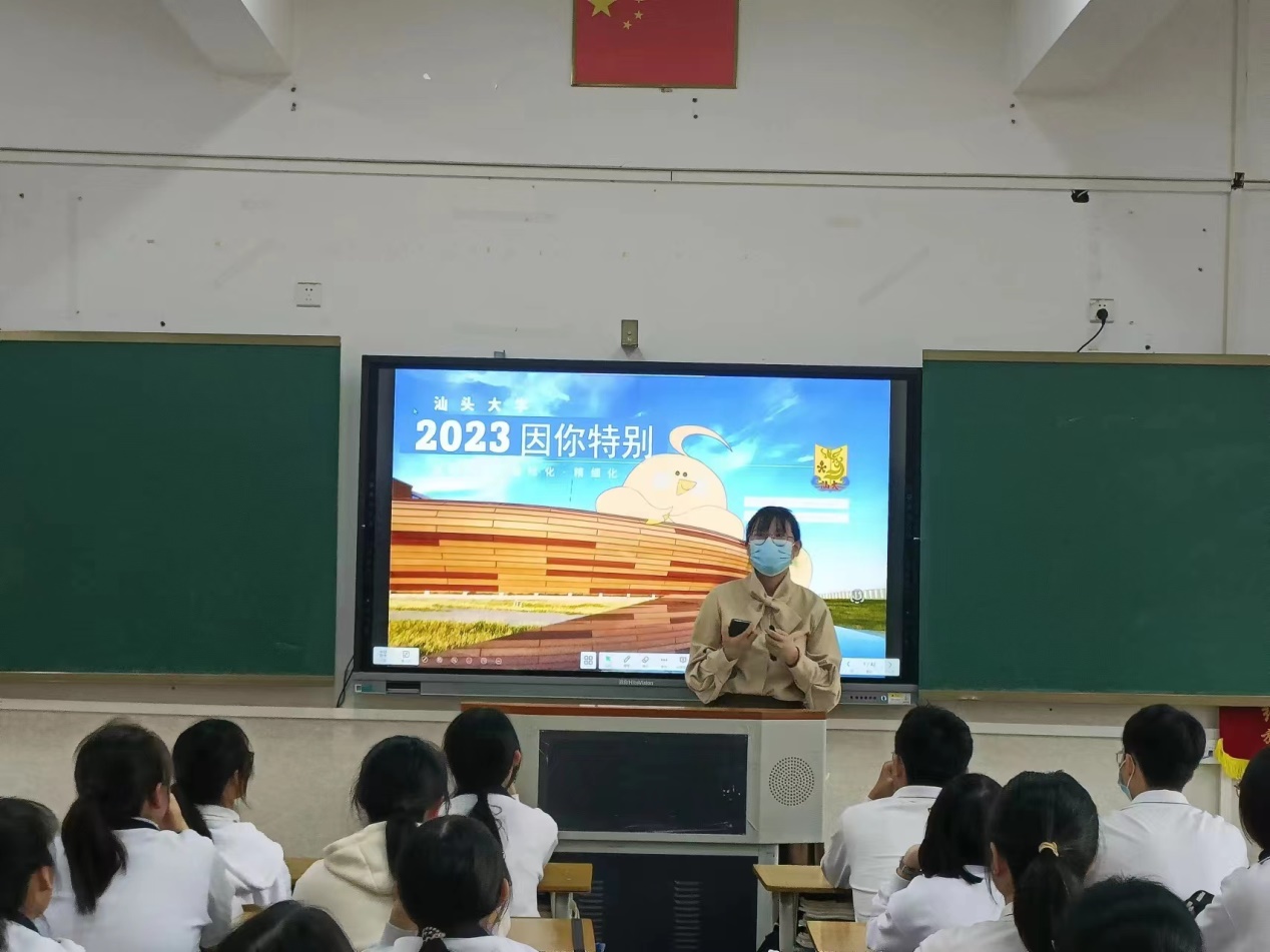 各大學(xué)分組進(jìn)班進(jìn)行了宣傳。華南師范大學(xué)、暨南大學(xué)、廣東外語外貿(mào)大學(xué)、深圳大學(xué)、汕頭大學(xué)等學(xué)生精心準(zhǔn)備了宣講課件和宣講視頻。他們詳細(xì)介紹了學(xué)校的基本情況、專業(yè)設(shè)置、課程安排、課余生活等,以供全體學(xué)生全方位立體了解各大學(xué)。還有的校友分享了自己的高考?xì)v程,介紹了學(xué)習(xí)方法和學(xué)習(xí)心態(tài),以供高三學(xué)子借鑒和參考。各班氣氛熱烈,不斷傳來歡聲笑語。