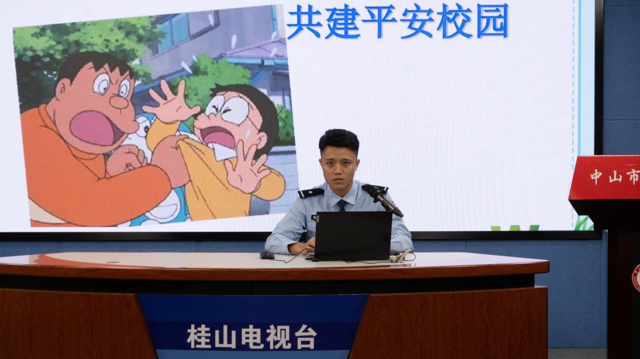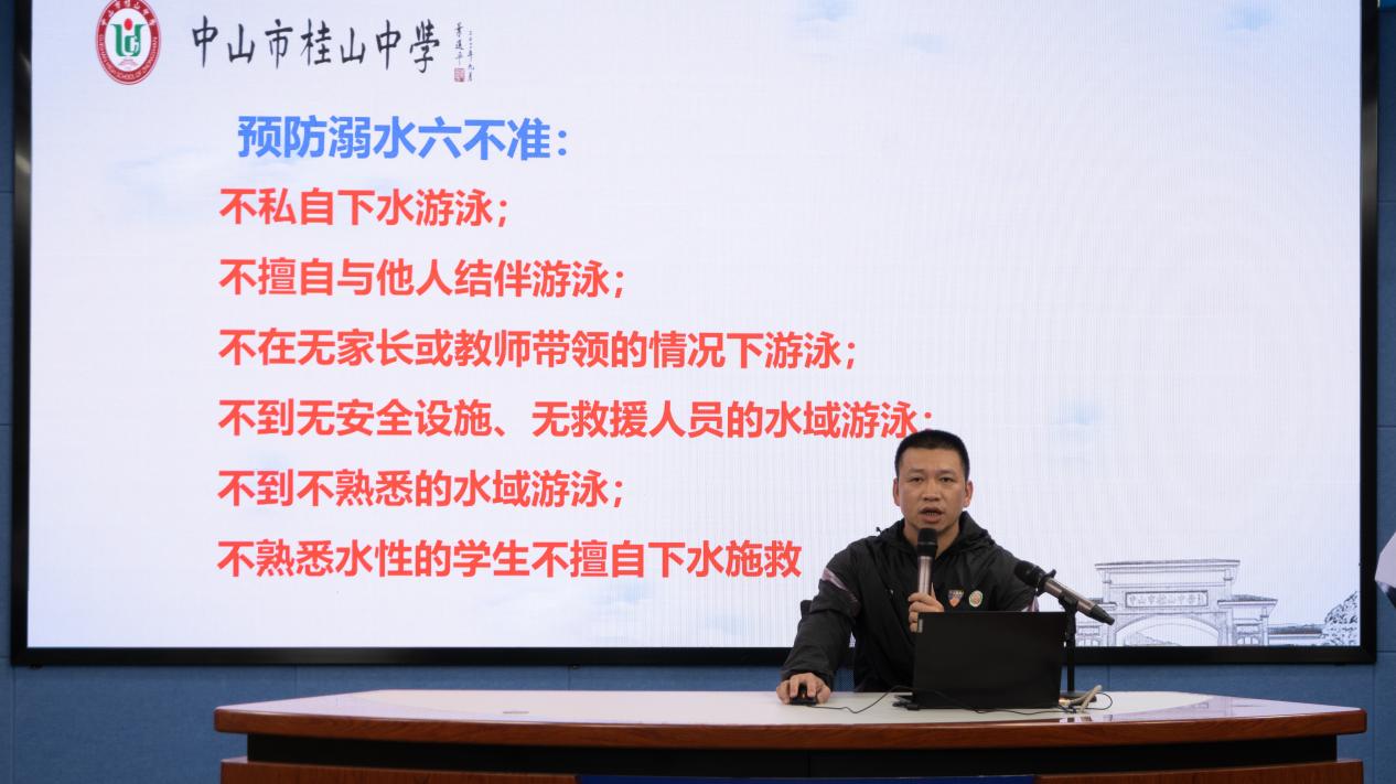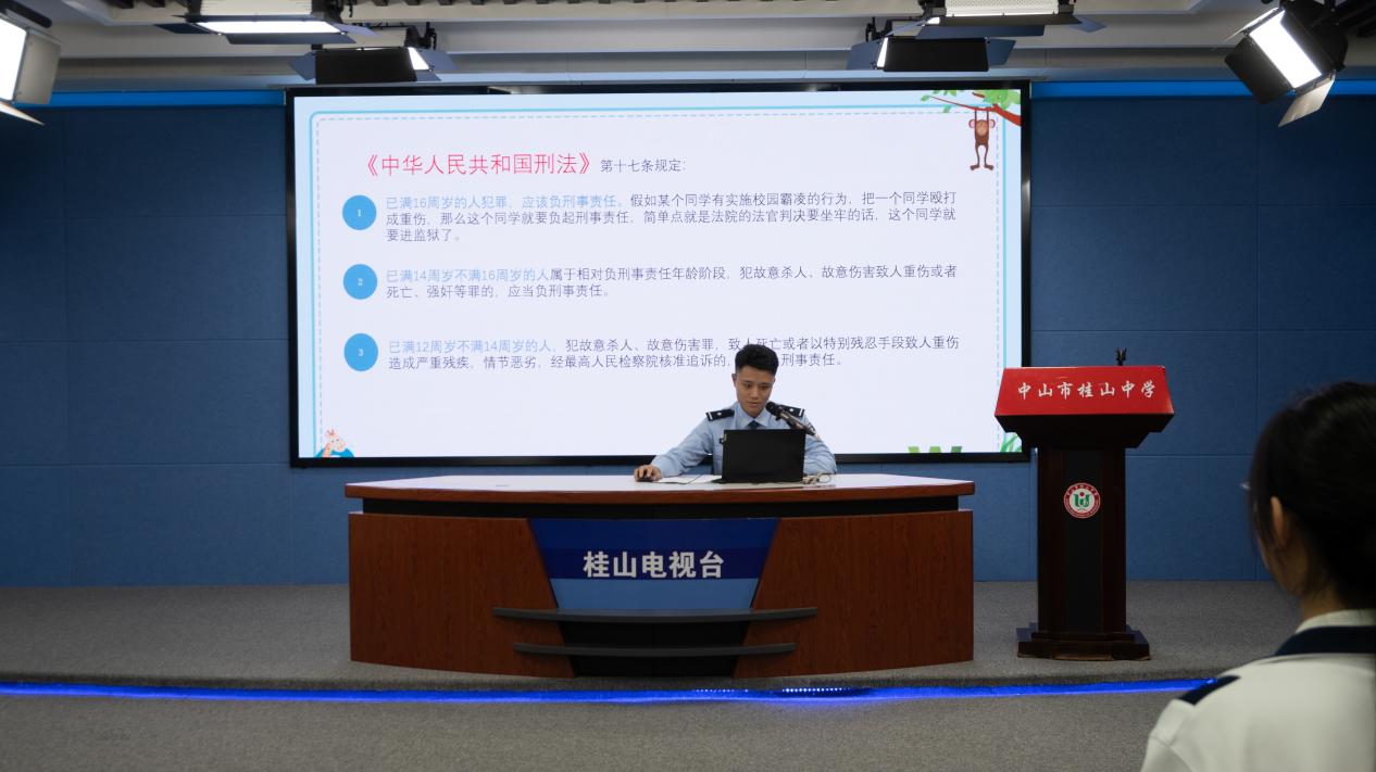 為提高學(xué)生的校園安全意識和自我保護(hù)意識,4月26日下午,中山市桂山中學(xué)面向全體在校學(xué)生舉行了預(yù)防校園欺凌暨五一假期安全教育專題講座,活動邀請了三鄉(xiāng)公安分局谷都派出所警官藍(lán)凌鋒,以校園電視臺直播形式進(jìn)行。