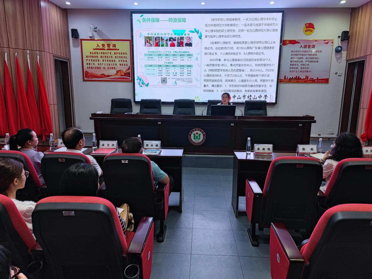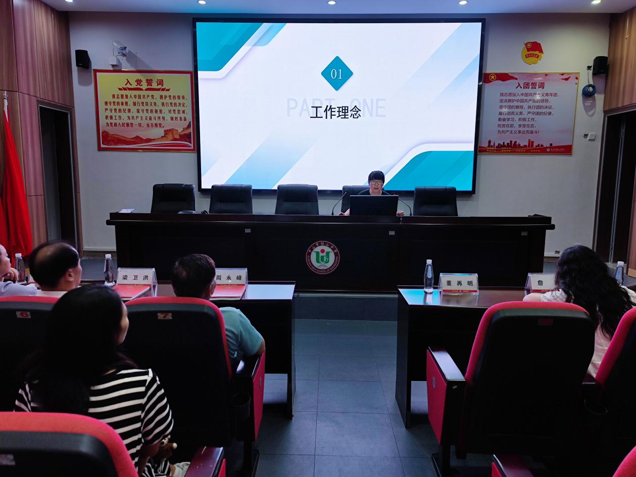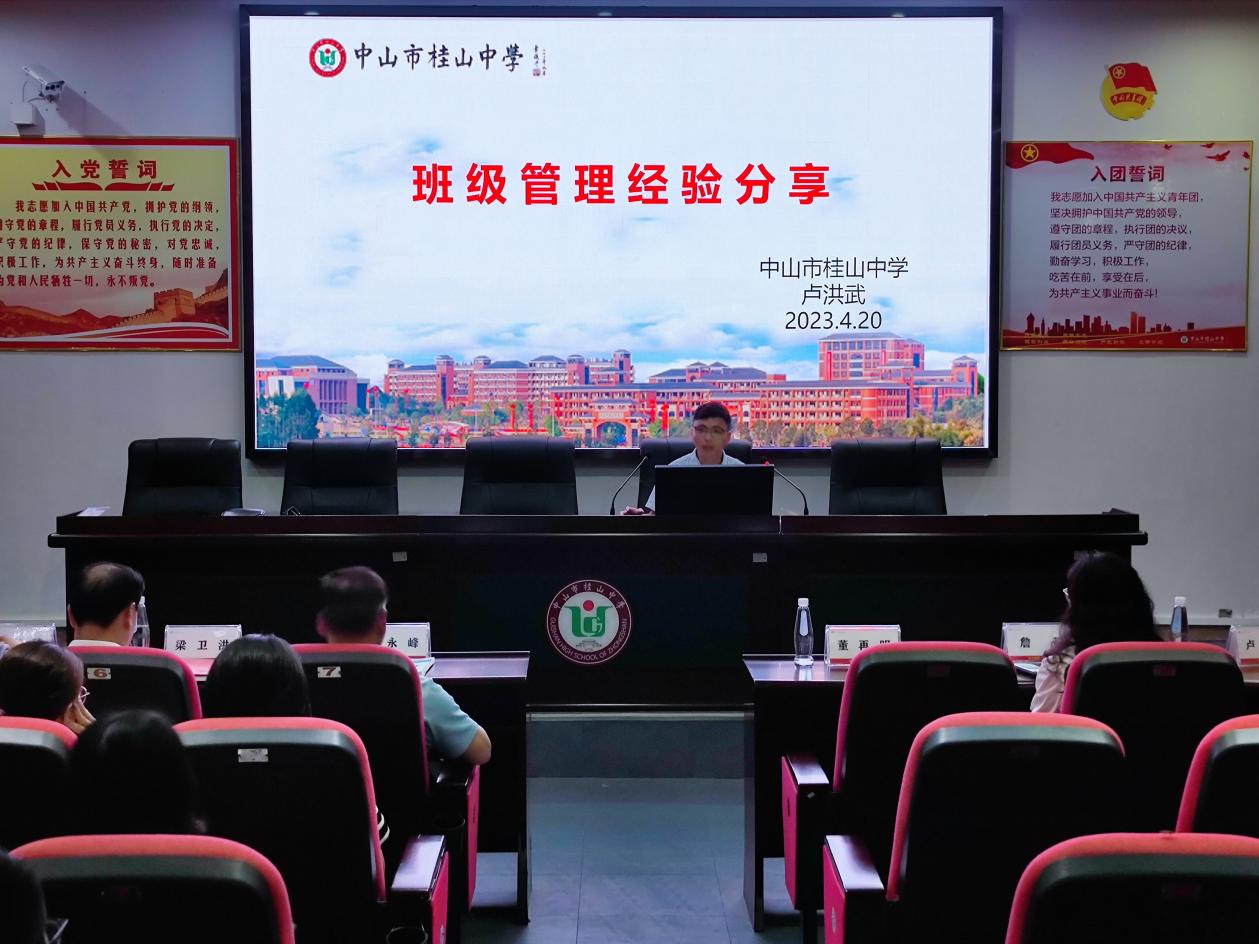 接著,來訪嘉賓移步學校育賢樓一樓黨員活動室,做進一步的交流探討。桂山中學董再明校長播放了學校宣傳片,從學校基本情況、發(fā)展歷程、教育理念、辦學特色等方面向來訪嘉賓作了介紹。德育處羅誠副主任對年級德育管理理念、工作策略和實踐做了經驗分享。盧洪武老師分享了班級特色文化創(chuàng)建、特色主題班會實踐活動和班級凝聚力形成的經驗。王婭婷老師對心理健康教育工作特色進行了聲情并茂的分享。