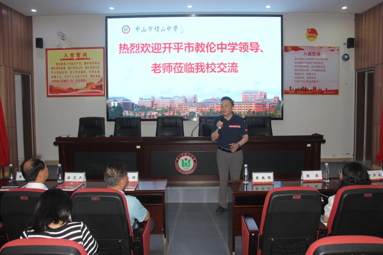 為加強校際交流,增進相互了解,促進德育工作高質量開展,4月20日上午,開平市教倫中學周永峰校長、梁衛(wèi)洪副校長帶領德育隊伍一行四十余人蒞臨桂山參觀交流。
