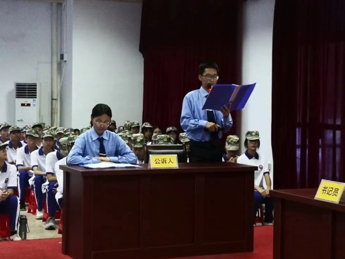 2021年10月20日,秋風(fēng)颯爽,陽光明媚,在中山國防教育訓(xùn)練基地綜合樓,中山市古鎮(zhèn)高級中學(xué)2021級高一全體學(xué)生正在觀摩學(xué)生模擬法庭活動。會場的陳設(shè)高度還原了法庭現(xiàn)場。所有學(xué)生正襟危坐,準(zhǔn)備好投入鮮活生動的案件現(xiàn)場。