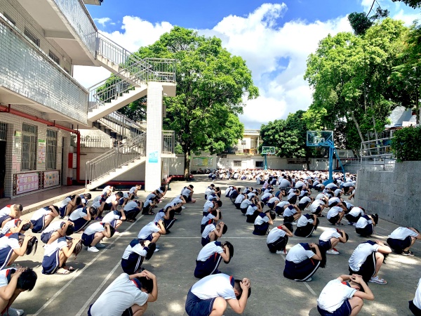 演練警報(bào)響起,全校一千多名學(xué)生在教師的組織下按照既定的路線有序撤離,過程中,學(xué)生們都能夠按照演練方案聽從統(tǒng)一指揮,不推擠、不喧嘩。均能夠做到不慌亂,情緒穩(wěn)定,秩序井然。