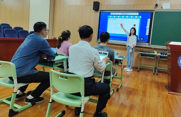 首先,課題主持人陳江老師針對課題現(xiàn)階段取得的成果進(jìn)行總結(jié),并檢查了大家近期確定的課程課題。為了確保課程的順利開展,陳江老師聯(lián)系了讀書郎學(xué)習(xí)機(jī)為課題開展提供平板。謝婷婷老師率先研究了讀書郎學(xué)習(xí)機(jī)的使用方法,為大家開展交流分享講座。謝老師分別從讀書郎學(xué)習(xí)機(jī)中的課件制作、游戲設(shè)置、作業(yè)批改和課堂互動搶答等方面依次和大家交流使用方法,并引導(dǎo)大家實踐操作,遇到大家不懂的有關(guān)操作的步驟和問題,謝老師耐心指導(dǎo),課題組成員都一一精通使用方法。最后,謝老師為大家設(shè)置了一個課題,每位老師根據(jù)課題制作相關(guān)小游戲,再利用游戲互動環(huán)節(jié)老師們逐漸精通制作方法。