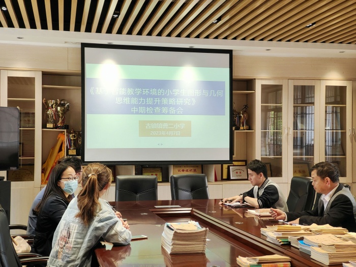 為順利推進(jìn)曹二小學(xué)的省級(jí)立項(xiàng)課題《基于智能教學(xué)環(huán)境的小學(xué)生圖形與幾何思維能力提升策略研究》中期檢查工作,及時(shí)了解并解決課題研究過(guò)程中的瓶頸問(wèn)題,4月7日下午,廣東省課題《基于智能教學(xué)環(huán)境的小學(xué)生圖形與幾何思維能力提升策略研究》課題組在曹二小學(xué)會(huì)議室召開(kāi)課題中期檢查籌備會(huì)。本次會(huì)議由課題主持人陳江老師主持,全體課題組成員參加了本次會(huì)議。