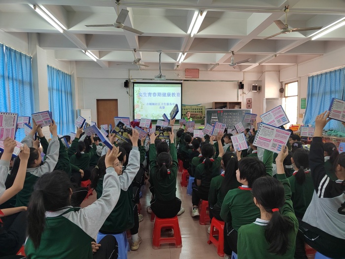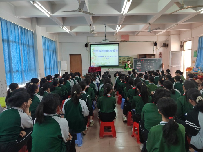 在講課過程中,古鎮(zhèn)鎮(zhèn)社區(qū)衛(wèi)生服務(wù)中心高慧醫(yī)生結(jié)合直觀而豐富的圖文課件,向參會(huì)女生們細(xì)致、形象的介紹了進(jìn)入青春期后女生身體發(fā)育和心理發(fā)展特點(diǎn),以及所要面臨的問題,并且引導(dǎo)女生們?cè)撊绾螌?duì)待、如何處理的方法和方式,從心理和生理兩方面幫助女生正確面對(duì)進(jìn)入青春期后生理和心理的變化。
