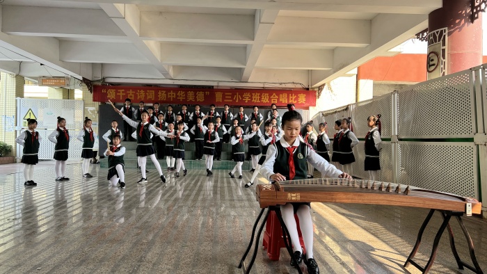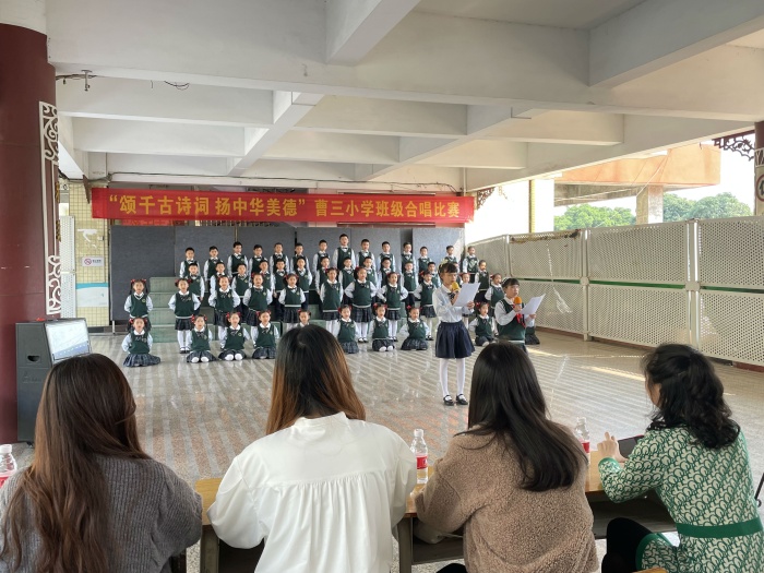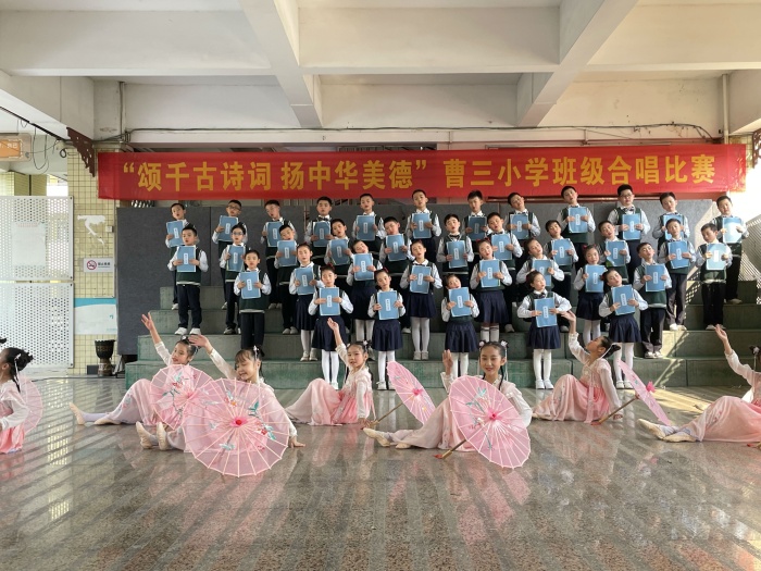 為弘揚中國傳統(tǒng)文化,豐富校園文化生活,增強班級凝聚力,激發(fā)學(xué)生對藝術(shù)的熱愛,體驗古詩詞和音樂的融合之美,2月24日,曹三小學(xué)舉行了以“頌千古詩詞 揚中華美德”為主題的班級合唱比賽。