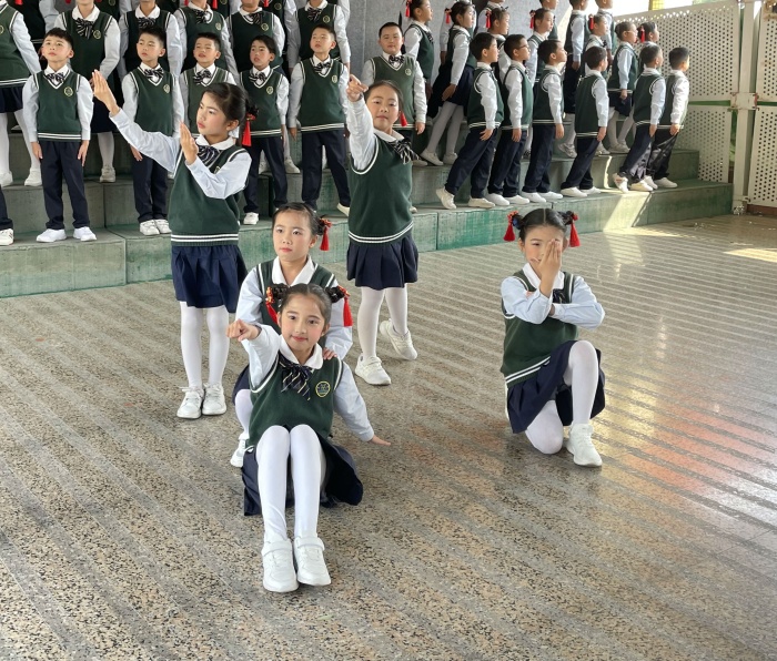 詩里有畫,畫里有歌。在主持人康詩曼、李奕洋同學(xué)充滿激情的開場白中,比賽拉開了序幕。本次比賽以班級為單位,一到六年級各班先后帶來了《靜夜思》《春曉》《詠鵝》《小池》等經(jīng)典古詩詞歌曲。每個班級的表演或清新別致,或充滿童趣,或自然活潑,或富于激情 。有的班級在合唱中融入了舞蹈元素;有的班級用民族樂器、打擊樂器伴奏;有的班級加入朗誦......豐富的演出形式,讓國學(xué)經(jīng)典更有韻律。孩子們在演唱中領(lǐng)悟“欲窮千里目,更上一層樓”樸素而深刻的哲理,從“小荷才露尖尖角,早有蜻蜓立上頭”中感受到了柔和的初夏風(fēng)光,草長鶯飛的早春《村居》,意境深遠的《明日歌》……和詩以歌,讓千年經(jīng)典化作新時代的歌聲,讓世界聽見文明古國的嶄新歌唱。經(jīng)過評委們認真細致的評選,一(1)班、一(4)班、二(1)班等11個班級獲得一等獎,一(2)班、一(3)班、二(2)班等12個班級獲得二等獎。