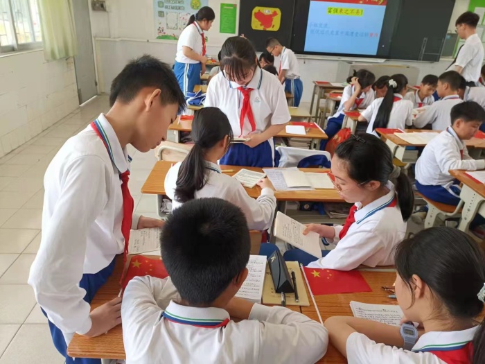四至五年級的三位老師以“富強(qiáng)”為主題,幾位老師各展風(fēng)采,為大家呈現(xiàn)了精彩的課例。四年級的胡雪英老師簡單地給學(xué)生闡述了富強(qiáng)的深刻內(nèi)涵,并通過觀看視頻讓學(xué)生了解了祖國的發(fā)展歷程。五年級的曾娜紅老師導(dǎo)入自然,帶動學(xué)生討論熱情。她借助豐富多彩的形式,將社會主義核心價值觀之一“富強(qiáng)”這一概念具體化系統(tǒng)化、生活化。六年級的黃俊峰老師首先通過觀看視頻、詩朗誦、集體宣誓等形式,讓學(xué)生深刻領(lǐng)悟到了社會主義核心價值觀的精神實(shí)質(zhì)和富強(qiáng)的內(nèi)涵。接著黃老師又引導(dǎo)學(xué)生從“暢談青春夢”到“共筑富強(qiáng)中國夢”,形成正確的社會主義核心價值觀教育,輕松的課堂教學(xué)氛圍,點(diǎn)燃師生互動的火種,給學(xué)生上了一堂生動的班會課。