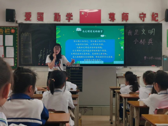為培育和踐行學(xué)生的社會主義核心價值觀,2022年3月,曹一小學(xué)德育處組織開展了主題為“社會主義核心價值觀,你我齊踐行”的主題班會課校賽選拔活動。每位參賽的班主任老師都能在精心準(zhǔn)備的基礎(chǔ)上,運(yùn)用多媒體輔助教學(xué),展現(xiàn)出自己的課堂風(fēng)采!
