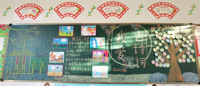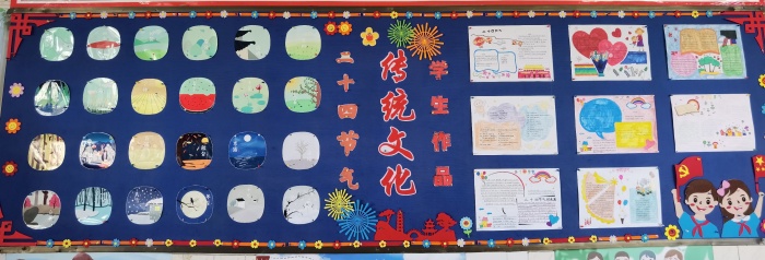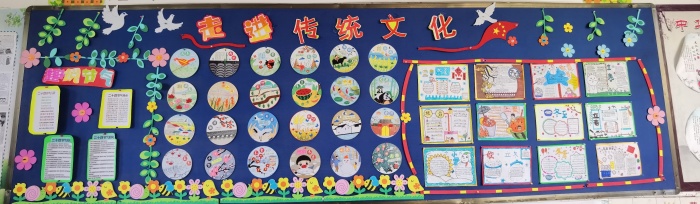 活動(dòng)期間,參賽班級(jí)緊緊圍繞著“走進(jìn)中華優(yōu)秀傳統(tǒng)文化”的活動(dòng)主題,班主任組織學(xué)生們根據(jù)中華傳統(tǒng)文化中經(jīng)典元素自主設(shè)計(jì)、制作教室板報(bào),有的以京劇為主題,有的以愛(ài)國(guó)故事為背景,有的以二十四節(jié)氣為主題,既有愛(ài)國(guó)主義成語(yǔ)詩(shī)詞,也有典故及時(shí)代新解,學(xué)生享受并體會(huì)傳統(tǒng)文化魅力給予的熏陶、感染和教育,感受民族自豪感與家國(guó)情懷,以此更好的促進(jìn)了班級(jí)文化建設(shè),讓中華傳統(tǒng)文化在班級(jí)中生根發(fā)芽。