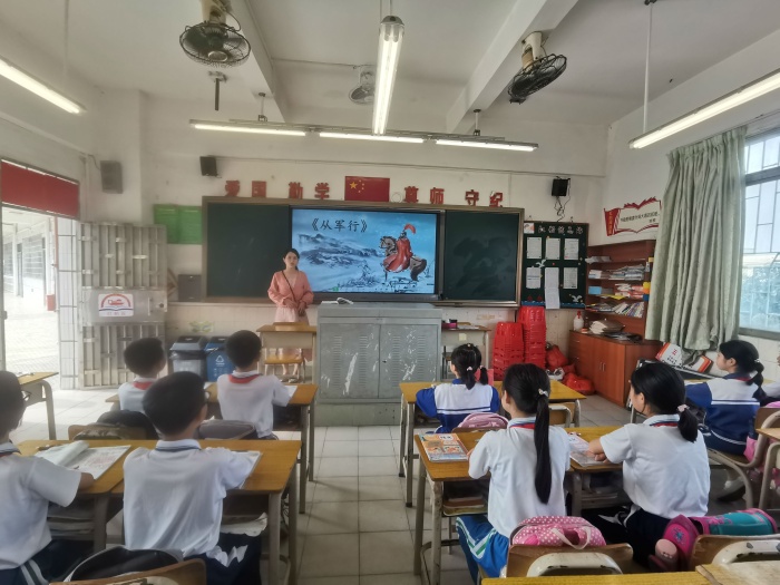 此次教研活動分為兩個年級組同時進行。低年級組由區(qū)穎珊老師帶來部編版小學語文一年級下冊第三單元的《靜夜思》,這是本冊教材第二次出現(xiàn)古詩。該詩語言凝練,感情真摯,意境較為深遠。高年級組由陳柯儀老師帶來部編版小學語文五年級下冊第四單元的《從軍行》。該詩將意蘊豐富的環(huán)境描寫和宏偉豪邁的感情抒發(fā)融為一體,是邊塞詩的佳作。