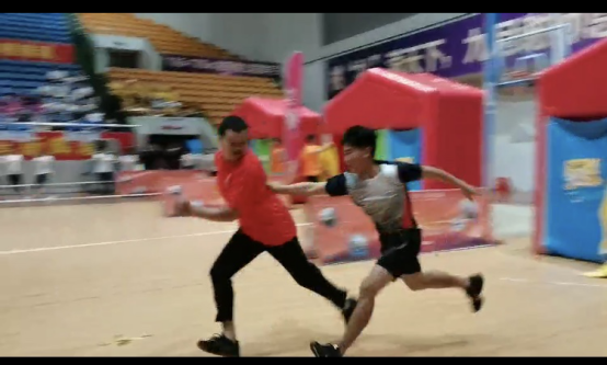 在第一個(gè)項(xiàng)目“智取蘿卜”競(jìng)賽中,派出了陳洪紹、文浩宇、李郁協(xié)、容偉業(yè)四位老師作為敵方的大灰狼,他們不負(fù)眾望,以敏捷的身手抓住了四只小兔子,為團(tuán)隊(duì)加分。其次隊(duì)員們作為小兔子來智取蘿卜時(shí),機(jī)靈敏銳,成功逃脫大灰狼的追捕并獲取三個(gè)根“又香又甜”的大紅蘿卜。這一項(xiàng)目共取得了9積分的好成績(jī),贏得了現(xiàn)場(chǎng)的陣陣掌聲。