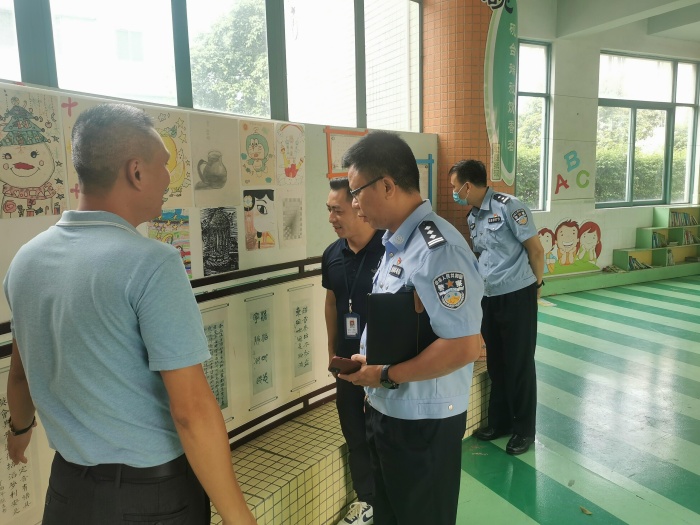 校園安全是學(xué)校工作的重中之重。為加強(qiáng)學(xué)校安全管理,維護(hù)校園安全穩(wěn)定,有效遏制校園安全事故的發(fā)生,確保古三小學(xué)有一個(gè)安全、穩(wěn)定、和諧的育人環(huán)境,9月26日上午,鎮(zhèn)黨委委員、公安分局局長潘軍,古鎮(zhèn)派出所所長張文勝,古三村委員廖炳標(biāo)到古三小學(xué)進(jìn)行安全工作專項(xiàng)督導(dǎo)。古三小學(xué)副校長姚成輯帶領(lǐng)全體行政領(lǐng)導(dǎo)陪同檢查。