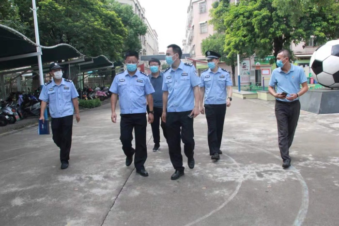 為進(jìn)一步加強(qiáng)校園安全管理工作,做好秋季學(xué)期開學(xué)準(zhǔn)備,確保古三小學(xué)師生平穩(wěn)、平安、有序開學(xué),8月25日上午,鎮(zhèn)黨委委員、公安分局局長潘軍,古鎮(zhèn)公安分局副局長林偉潮,古鎮(zhèn)派出所所長張文勝,古鎮(zhèn)公安分局治安大隊(duì)副大隊(duì)長鐘勇飛,古三村黨委委員、村副主任區(qū)勝權(quán),古三村黨委委員周永光到古三小學(xué)進(jìn)行安全工作專項(xiàng)督導(dǎo)。古三小學(xué)校長陳凱帶領(lǐng)全體行政領(lǐng)導(dǎo)陪同檢查。