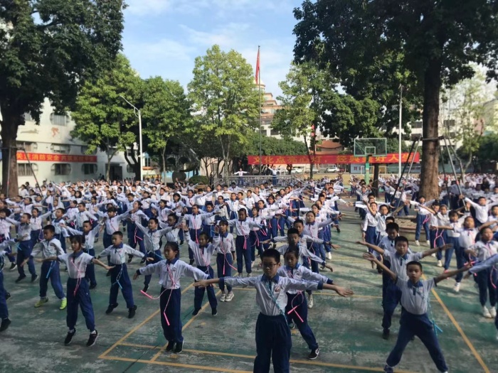 首先,古一小學德育處蔡海雄主任帶領班主任隊伍參觀校園文化建設及特色班建設。一路走來,老師們紛紛拍照記錄下精彩畫面。接著,老師們觀摩了“繩”彩飛揚大課間活動,各個班級列隊出場,步伐整齊、口號洪亮,廣播操和繩操動作整齊有力,動作中充滿自信,充分展現(xiàn)了古一學子的活力和魅力,令遠道而來的班主任老師們贊嘆不已。