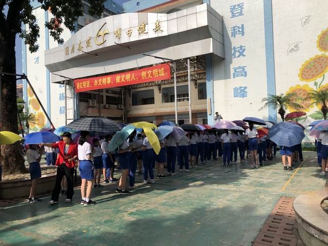 在一年級(jí)學(xué)生被家長(zhǎng)接走、有雨具的學(xué)生也已離開(kāi)校園后,唐主任通過(guò)廣播通知其他沒(méi)雨具的學(xué)生列隊(duì)到一樓等候。全體行政和值日教師在各樓層和校門口指揮疏散,并且提醒學(xué)生注意安全,及時(shí)提供幫助等。
