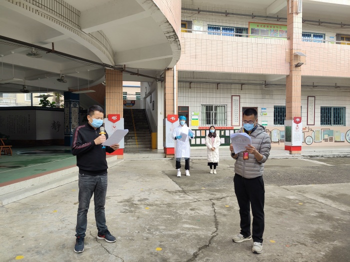 情景四:校園封閉管理。根據(jù)市鎮(zhèn)級(jí)疫情防控指揮部指示,校長陳富權(quán)通知學(xué)校啟動(dòng)封閉校園管理,校外人員、車輛未經(jīng)審批不得進(jìn)校。停止校園群體性聚集活動(dòng)。保安加強(qiáng)校門口警戒,接應(yīng)衛(wèi)生健康部門專業(yè)人員到場。