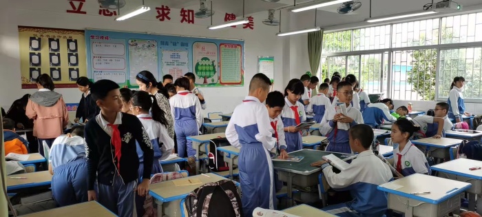 11月15日,袁麗好老師在五(2)班執(zhí)教《植樹問題》一課,她通過猜謎的方式導(dǎo)入“植樹問題”,迅速調(diào)動起學(xué)生的求知欲,通過觀察比較、動手操作、合作交流等活動探究新知,經(jīng)歷和體驗“數(shù)形結(jié)合”“化繁為簡”的解題策略和數(shù)學(xué)方法。