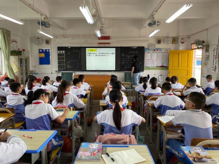11月16日,袁燕華老師在六(3)班執(zhí)教《比的應(yīng)用》一課,她聯(lián)系實際生活展示比在生活中的應(yīng)用例子,使學(xué)生感受數(shù)學(xué)的實用性。