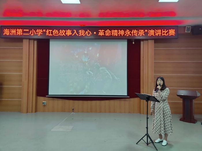 為慶祝中國(guó)共產(chǎn)黨成立100周年,根據(jù)學(xué)校黨史學(xué)習(xí)教育相關(guān)工作安排,2021年11月2日,海洲第二小學(xué)在修身學(xué)堂舉辦“紅色故事入我心?革命精神永傳承”主題演講比賽。