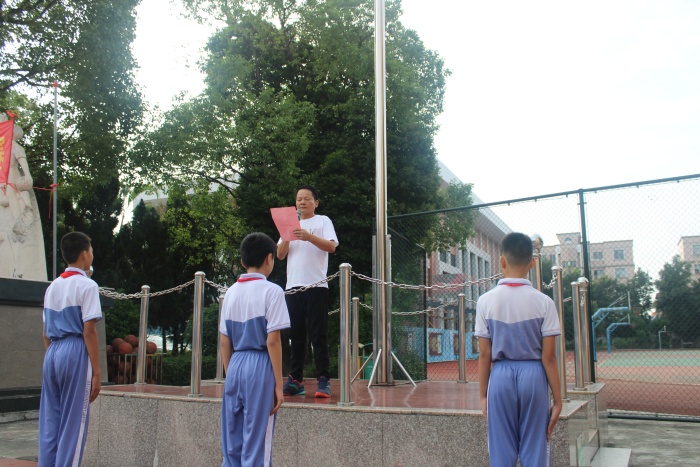 活動(dòng)伊始,全校師生面向升旗臺(tái)升國(guó)旗,唱國(guó)歌,少先隊(duì)員向鮮紅的五星紅旗莊嚴(yán)敬禮。緊接著,海洲第二小學(xué)陳富權(quán)校長(zhǎng)面向全校師生發(fā)表國(guó)旗下講話,陳富權(quán)校長(zhǎng)圍繞“感恩、知國(guó)、報(bào)國(guó)、安全”四個(gè)方面,強(qiáng)調(diào)應(yīng)常懷感恩之心,要主動(dòng)了解偉大的祖國(guó),為國(guó)家富強(qiáng)民族復(fù)興而努力學(xué)習(xí),有強(qiáng)健的身體、有堅(jiān)強(qiáng)的意志,以報(bào)效國(guó)家、傳承文明。最后,陳富權(quán)校長(zhǎng)總結(jié),八天漫長(zhǎng)的假期,安全要放在首位。