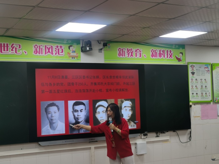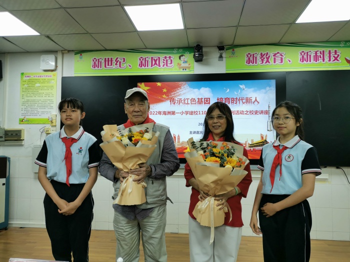 郭昉凌老師則從學校建立的歷史淵源出發(fā),講述海洲小學的發(fā)展歷程和海洲人民的革命歷史。中山市古鎮(zhèn)鎮(zhèn)海洲第一小學其前身為海洲國民學校,由革命先行者魏邦平先生于一九一二年創(chuàng)辦,期間四遷校址,四次更名,是一所具有悠久革命傳統(tǒng)和深厚文化底蘊的學校。全校師生深切地感受到了學校厚重的歷史積淀、滄桑的辦學歷程、輝煌的辦學成就。