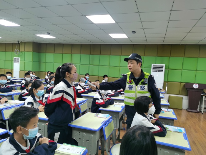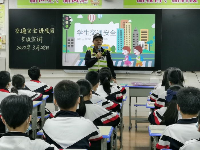 在宣講活動中,古鎮(zhèn)鎮(zhèn)交警大隊周智浩叔叔利用精心制作的PPT課件,結(jié)合校園周邊道路交通管理實際,從“乘車安全”“交通標(biāo)志”“知危險,會避險”,“爭做文明小使者”四個內(nèi)容進行宣講。這四個內(nèi)容,交警叔叔都通過一系列的典型事故案例,提醒學(xué)生們一定要重視交通安全,不能在馬路上嬉戲打鬧、不闖紅燈、不隨意橫穿馬路、不在停車場玩耍、不在車邊逗留等,進一步鞏固學(xué)生的交通安全防范知識,自覺做到“知危險、會避險”。在聆聽宣講后,不少同學(xué)對交通法律法規(guī)、機動車在路上行駛時發(fā)生的意外應(yīng)如何處理等產(chǎn)生了疑問,而交警叔叔耐心地一一解答同學(xué)們心中的疑問并通過播放交通安全宣傳視頻,讓同學(xué)們進一步了解平安出行的方式方法。