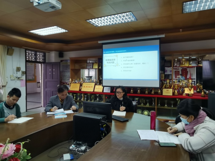 第二議程由鄧主任進行德育(班主任)工作總結與寒假工作布置和后勤副主任賴名佩進行寒假防疫工作與班級后勤工作布置。