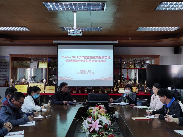花開花落,云卷云舒,一學(xué)年的教學(xué)工作即將落下帷幕。過去一年,海洲第一小學(xué)在古鎮(zhèn)鎮(zhèn)2020-2021學(xué)年度推進(jìn)素質(zhì)教育目標(biāo)管理暨績(jī)效考評(píng)活動(dòng)中榮獲一等獎(jiǎng)。為了更好地發(fā)揚(yáng)海洲第一小學(xué)教育人奮發(fā)有為,砥礪前行的精神,以更飽滿的斗志與干勁迎接新一年的工作。2021年12月30日下午,海洲第一小學(xué)在會(huì)議室召開了2020-2021學(xué)年度推進(jìn)素質(zhì)教育目標(biāo)管理暨績(jī)效考評(píng)總結(jié)交流分享會(huì),全體教師參加了此次會(huì)議。