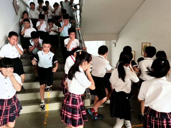不到三分鐘的時(shí)間,1000多名師生訓(xùn)練有素地從各個(gè)室場(chǎng)撤離到學(xué)校操場(chǎng)空地上。隨后各班班主任清點(diǎn)人數(shù),匯報(bào)給各年級(jí)級(jí)組長(zhǎng)。能如此快速有序地撤離,得益于海洲第一小學(xué)平時(shí)對(duì)安全工作的重視。學(xué)校認(rèn)真執(zhí)行上級(jí)規(guī)定,每個(gè)月組織學(xué)生進(jìn)行疏散演練,讓師生們?cè)诙ㄆ诘氖枭⒀菥氈欣斡涀⒁馐马?xiàng)與撤離路線,疏散時(shí)做到井然有序。