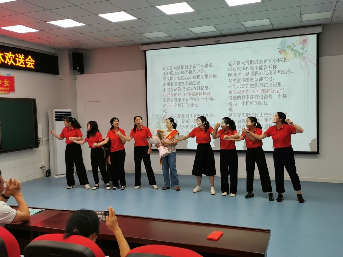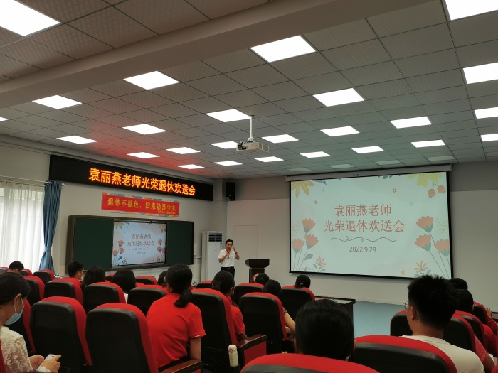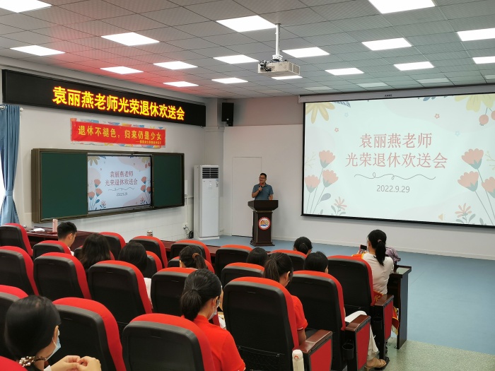緊接著,黃業(yè)香老師介紹了袁麗燕老師的從教生涯,表達(dá)了內(nèi)心深深的不舍,并將這些不舍制作成PPT展現(xiàn)出來。一句話、一首詩、一張照片,那是最美祝福。