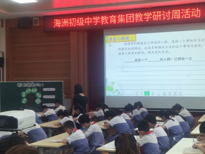 課例展示后,由海洲片三位語(yǔ)文科組長(zhǎng)以及兩位上課的老師有針對(duì)性地圍繞“新課標(biāo)下的習(xí)作如何教學(xué)”進(jìn)行沙龍研討。甘泳琪老師進(jìn)行反思后,參與研討的老師圍繞”聚焦學(xué)習(xí)任務(wù)群,重構(gòu)習(xí)作設(shè)計(jì)”的話題,針對(duì)甘老師的課進(jìn)行評(píng)課、議課,他們對(duì)甘泳琪老師的課堂教學(xué)進(jìn)行了高度的評(píng)價(jià)的同時(shí)也提出了自己獨(dú)特的見(jiàn)解。