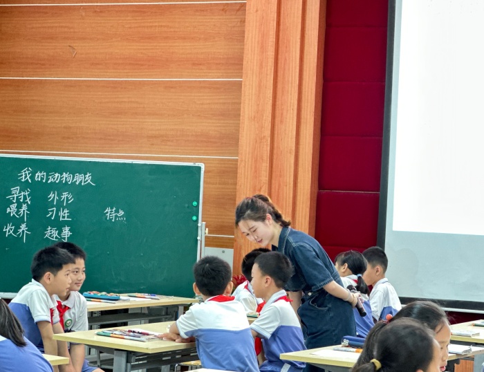 海洲第一小學(xué)甘泳琪老師在團(tuán)隊(duì)的共同研磨下,展示四年級(jí)上冊(cè)第四單元習(xí)作課例《我的動(dòng)物朋友》。甘泳琪老師在習(xí)作教學(xué)中先以單元習(xí)作例文切入,創(chuàng)設(shè)了三個(gè)情境,引導(dǎo)學(xué)生留心觀察小動(dòng)物的外形、習(xí)性、趣事等特點(diǎn),對(duì)典型事例進(jìn)行具體的描寫(xiě)。本次執(zhí)教中,甘泳琪老師課堂教學(xué)中最大的亮點(diǎn)在于,當(dāng)學(xué)生介紹情境中的動(dòng)物朋友時(shí),及時(shí)捕捉學(xué)生語(yǔ)言描述的生動(dòng)性,強(qiáng)化學(xué)生的情感體現(xiàn),從語(yǔ)言描述中捕捉體現(xiàn)親密關(guān)系、朋友情誼的詞或句,為后面的動(dòng)筆做好鋪墊。