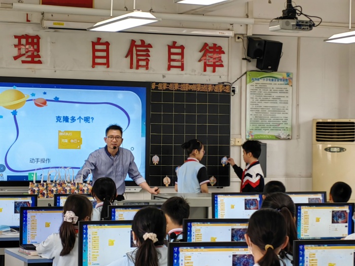本次教研活動以“重信息素養(yǎng),育創(chuàng)新意識”為主題,研討活動分課例展示、評課議課和主題研討三個環(huán)節(jié)。第一環(huán)節(jié)中,海洲第一小學(xué)的郭偉斌老師和新徽學(xué)校的陳微玲老師都為教研組成員展示了《飛船游太空》這一課例。同課卻不同構(gòu),郭老師注重學(xué)生整體思維的提高,在教學(xué)中創(chuàng)設(shè)了三個活動,從“飛船”到“流星現(xiàn)太空”,再到“流星雨下落”,學(xué)生在三個活動中互幫互助,協(xié)作學(xué)習(xí),在問題導(dǎo)向引導(dǎo)中逐步掌握技能。陳老師則注重信息技術(shù)理論的培養(yǎng),通過引入微課與學(xué)習(xí)單,極大豐富了課堂的趣味性與生動性,學(xué)生在老師的引導(dǎo)下逐步掌握每一個操作技能。兩位老師精彩的課堂可謂是各具特色,為現(xiàn)場觀摩老師留下了深刻印象。