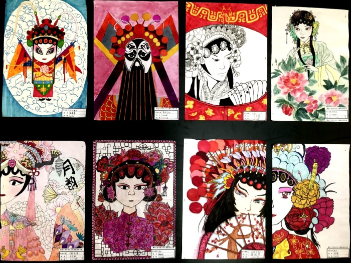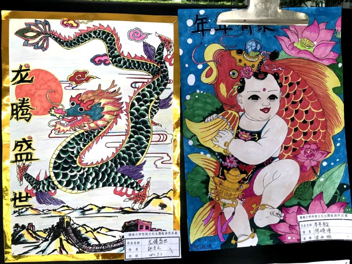 學(xué)生們在老師的指導(dǎo)下,用心、用情繪畫出許多有質(zhì)量的、精美的作品。每個班選出最優(yōu)秀的5張作品進(jìn)入年級評審,美術(shù)科組老師根據(jù)畫面的主題、創(chuàng)意、表現(xiàn)、色彩、構(gòu)圖等方面評選出最佳創(chuàng)意獎和最佳表現(xiàn)獎。低年級孩子大力挖掘傳統(tǒng)節(jié)日的元素,畫面表現(xiàn)了中國傳統(tǒng)節(jié)日的熱鬧情境和豐富的文化內(nèi)涵;中年級的年畫表現(xiàn)上有傳統(tǒng)元素的臨摹,同時又有現(xiàn)代元素創(chuàng)新結(jié)合,讓人耳目一新;高年級戲曲作品中,孩子們將戲曲人物中的生的文質(zhì)彬彬、花旦的優(yōu)雅、凈的威武、丑的詼諧表現(xiàn)得淋漓盡致,形象生動,讓大家感受到了戲曲藝術(shù)的魅力。