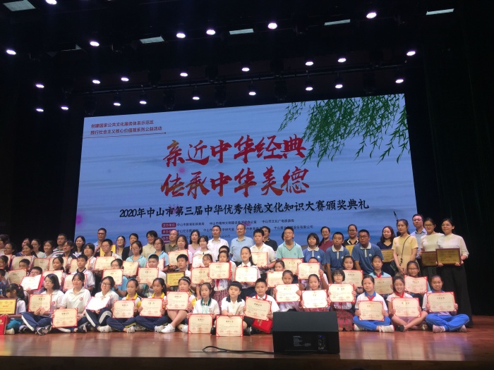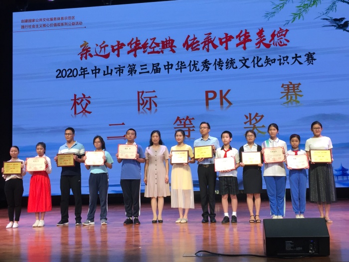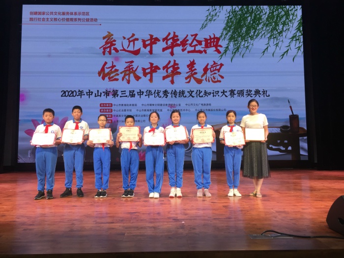 金秋九月,秋風(fēng)習(xí)習(xí),還送來(lái)了好消息。9月26日上午,鎮(zhèn)南小學(xué)的郭淑玲老師和甘凱琳、張銘樂(lè)等八位學(xué)生代表,一同參加了中山市第三屆中華優(yōu)秀傳統(tǒng)文化知識(shí)大賽的頒獎(jiǎng)典禮。鎮(zhèn)南小學(xué)除了在網(wǎng)上個(gè)人海選賽中取得優(yōu)異成績(jī),還在校際PK賽中獲得了二等獎(jiǎng)。