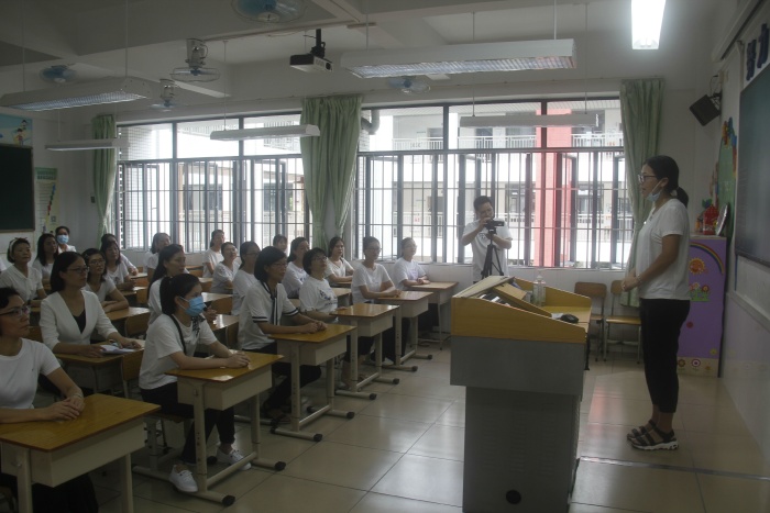 隨后,演練模擬了教室上課情景。在上課期間,一同學(xué)出現(xiàn)身體不適。任課老師老師馬上暫停講課,對(duì)其進(jìn)行體溫測(cè)試。發(fā)現(xiàn)體溫異常,馬上電話聯(lián)系班主任帶該學(xué)生到校醫(yī)室。初步斷定該學(xué)生是疑似病例,校醫(yī)告訴梁耀倫副校長聯(lián)系社區(qū),聯(lián)系120接學(xué)生到醫(yī)院就診,校醫(yī)通知家長具體處理情況,向楊校長匯報(bào)并上報(bào)上級(jí)教育部門。